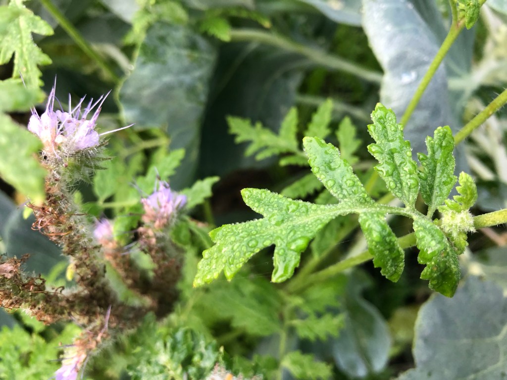 Der Bienenfreund hat noch mehr Vorteile: Er kommt äußerst gut mit langen Trockenperioden zurecht. Dieser Regen! Was im letzten Jahr zuviel war, bleibt in diesem Sommer scheinbar ganz aus. Meinen Bienenfreund stört das nicht. Die rauen Blättchen und die zart behaarten Stängel fangen den Morgentau ein. Sie geben ihn an ihre Umgebung ab und spenden kühlenden Schatten.