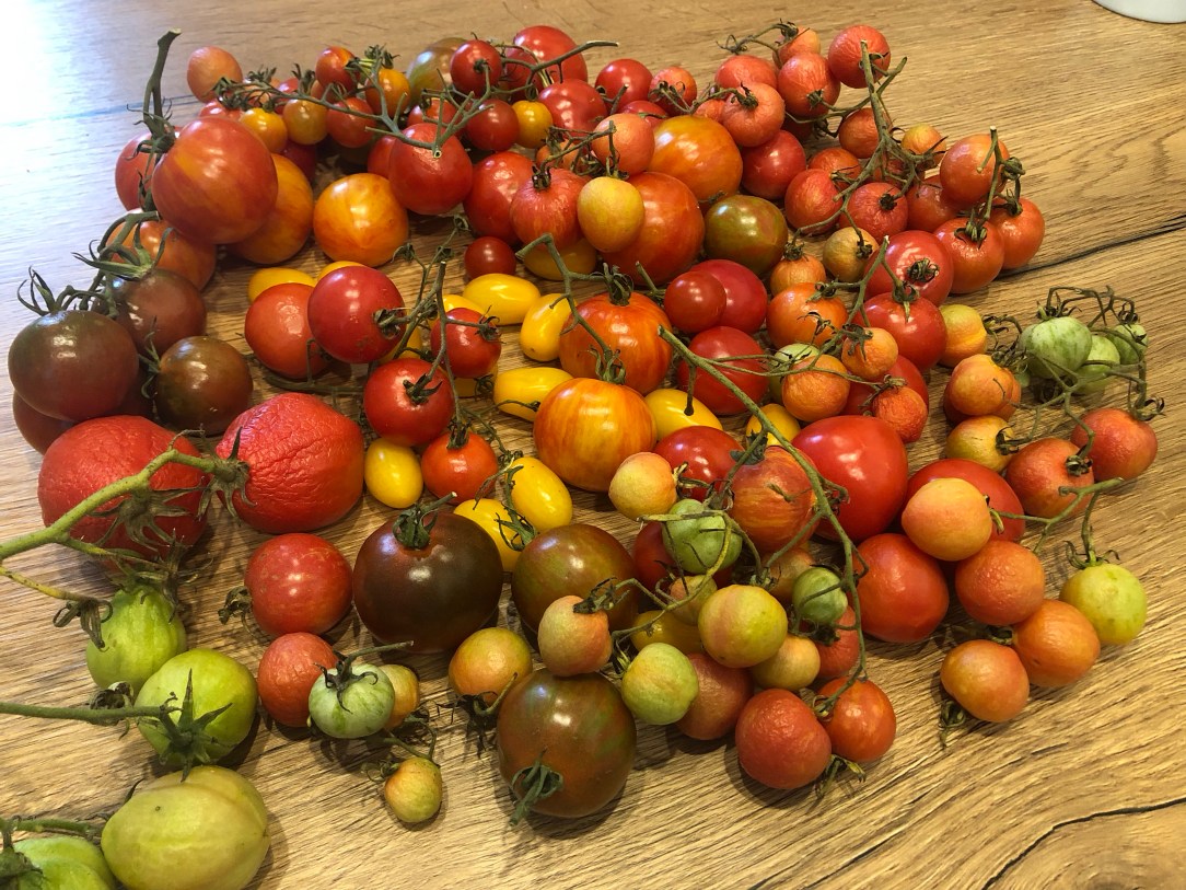 In den einschlägigen Gartenforen ist in diesen Tagen immer wieder von begeisterten Kleingärtnern zu lesen, die Anfang November noch Tomaten ernten können. Das besonders milde Herbstwetter lädt dazu ein. Aber nicht in der Voreifel. Wir hatten schon vor vier Wochen die ersten Nachtfröste. Keinen Tag zu früh hatte ich mich entschieden, meine noch grünen Tomaten