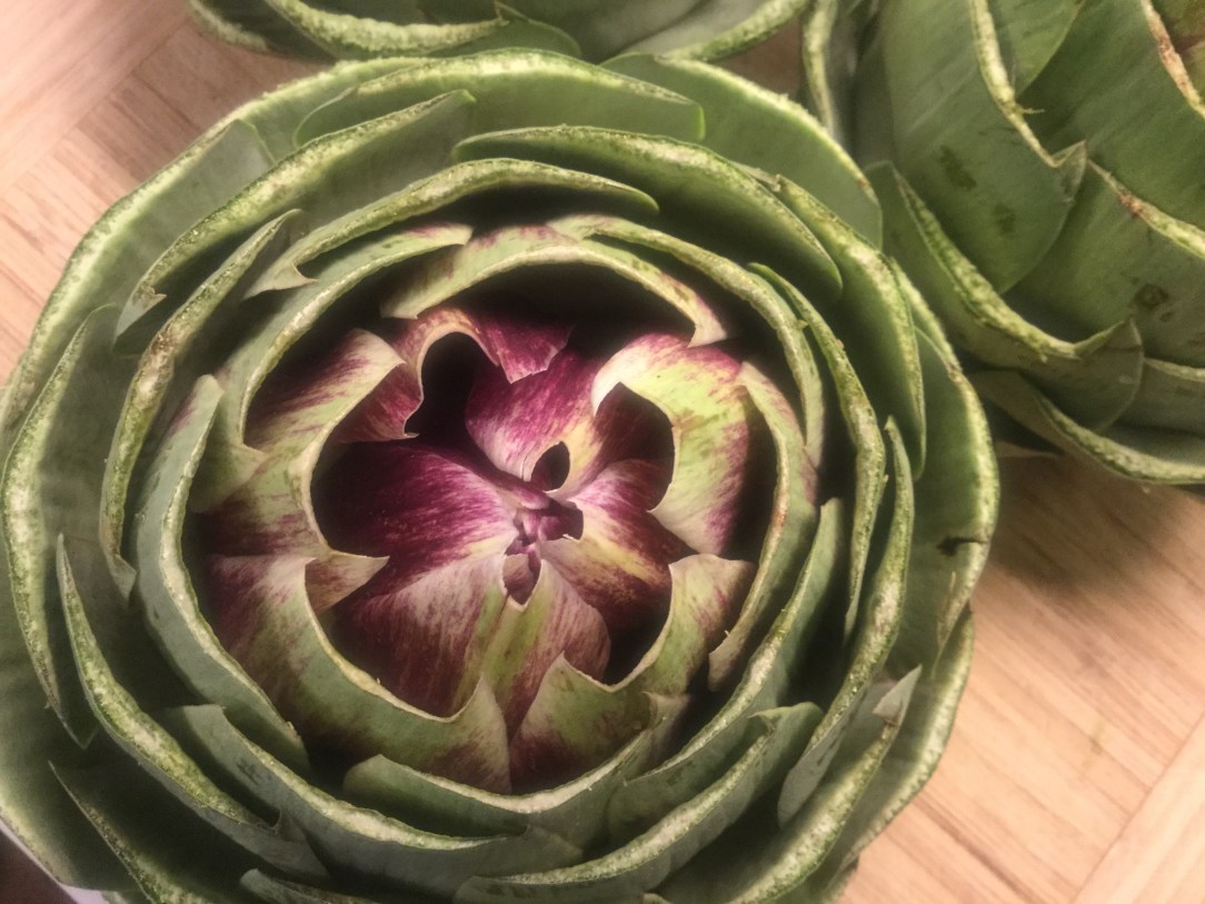Jedes Jahr begebe ich mich im Urlaub auf Souvenirjagd. Die Regale zu Hause füllen sich immer mehr, wobei die einst so heiß geliebten Mitbringsel zu Kitsch verkommen. In diesem Jahr habe ich es anders gemacht. Am letzten Tag unseres Normandie-Urlaubs sind wir über den Wochenmarkt geschlendert und haben uns diese riesigen Artischocken mitgebracht. Das Stück